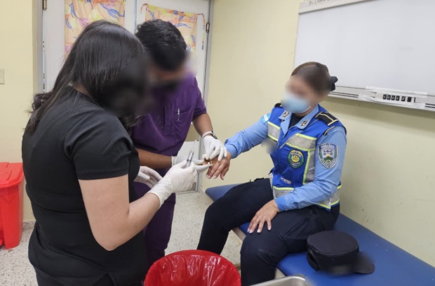 Durante el forcejeo, la mujer intentó despojar a la agente de su arma de reglamento, ocasionándole una lesión en un dedo y la fractura de una uña, además de dañar su uniforme.