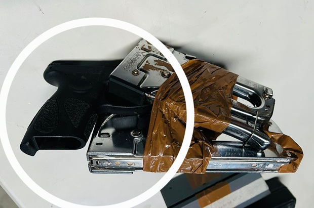 Fue entonces cuando entre herramientas y objetos aparentemente inofensivos, los agentes descubrieron una pistola marca Taurus, color negro, con un cargador, cuidadosamente camuflada para evadir los controles.