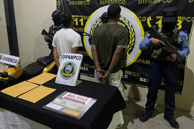 DIPAMPCO captura a dos miembros de “Los Iluminati” mientras realizaban cobros extorsivos en Santa Ana