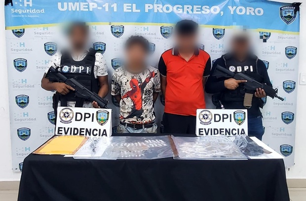 Esta importante detención se llevó a cabo en la colonia Las Colinas, municipio de El Progreso, departamento de Yoro. A los sospechosos se les dio detención de manera flagrante en poder de 90 envoltorios de supuesta droga y teléfonos celulares.