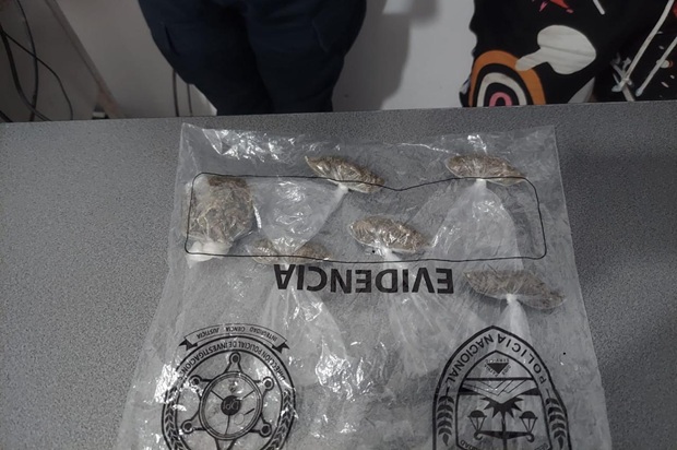 Los detenidos son un hombre de 19 años de edad, originario de Saba Colón y residente del barrio la Pava, el cual se le decomisó 06 bolsas transparentes con hierba seca supuesta Marihuana.