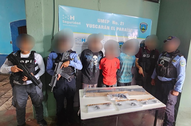 ​La efectiva operación fue ejecutada por agentes asignados en Yuscarán, quienes, mediante labores de investigación, vigilancia y seguimiento, lograron ubicar y detener a los sospechosos en la aldea Joya Grande, municipio de Morocelí.