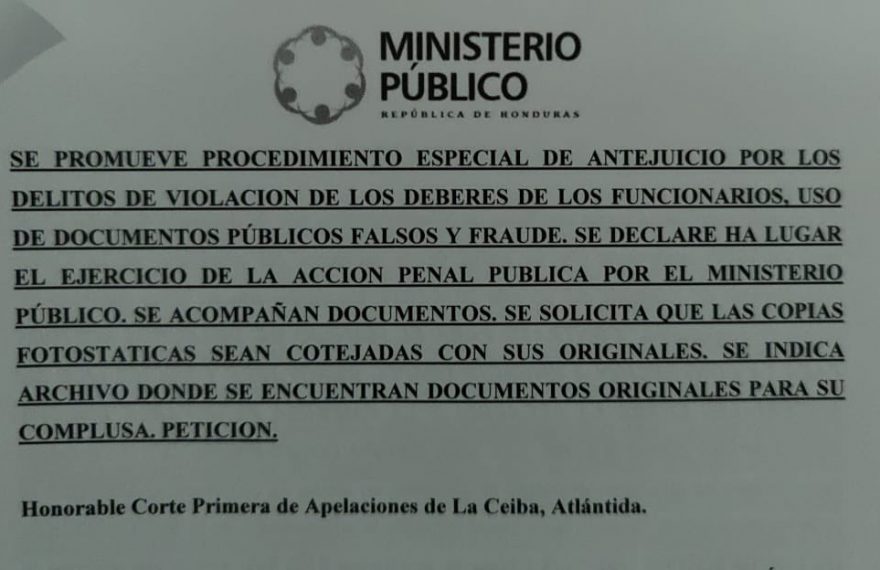 La Ceiba, Atlántida. El Ministerio Público, a través de la Fiscalía Especial para la Transparencia y Combate a la Corrupción Pública (FETCCOP), presentó este día ante la Corte Primera de Apelaciones, una solicitud de Antejuicio contra el exalcalde de la ciudad de La Ceiba y actual regidor Carlos Alejandro Aguilar Ponce, a quien se le […]Continue Reading