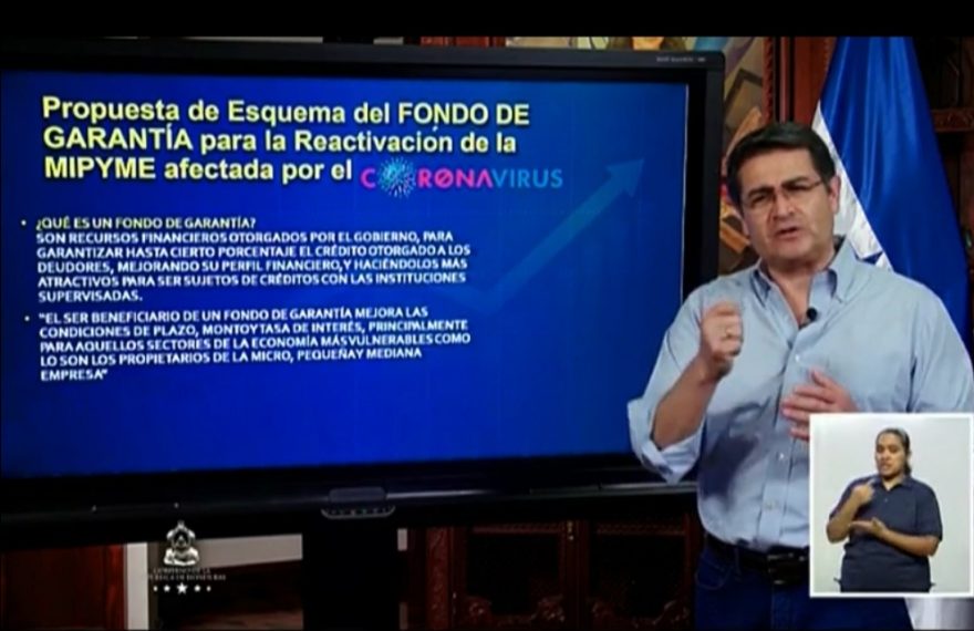 Tegucigalpa. El presidente de la República, Juan Orlando Hernández, presentó los alcances del rescate económico de las micro, pequeñas y medianas empresas (Mipymes) y el esquema del fondo de garantía para dicho sector, que genera más del 70% de los empleos en el país y que ha sufrido el impacto económico del coronavirus.Continue Reading
