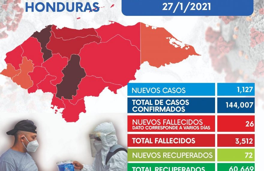 Tegucigalpa. Los casos de covid-19 en Honduras se elevaron hoy a 144.007 desde el inicio de la pandemia con la confirmación de otros 1.127 contagios, mientras que los pacientes recuperados aumentaron a 60.669, informó el Sistema Nacional de Gestión de Riesgo (Sinager).Continue Reading